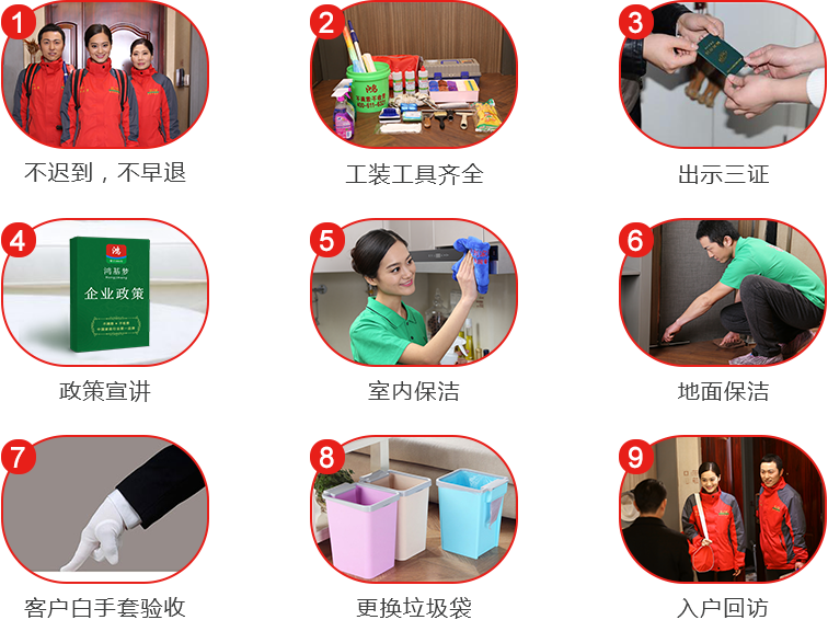 1.窗明幾凈:提供服務成功后小房間潔凈清亮 2.干清洗凈:功能到位后也沒有油垢、有塵、沉淀物 3.井然系統化:違禁物品放置平整,局部打掃衛生清潔衛生